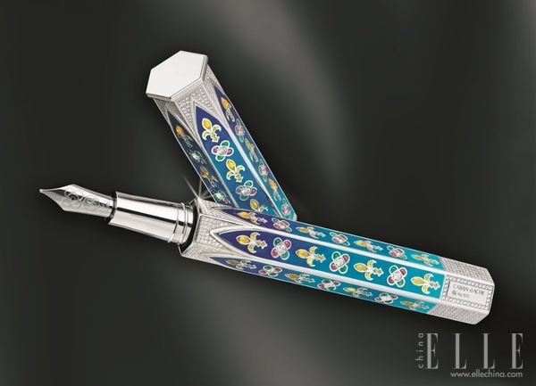 Đây là sự kết hợp hoàn hảo của 2 thương hiệu lớn là Van Cleef và Arpels và Montblanc. Cây bút máy này được trang trí với 20 carat đá hồng ngọc, sappire, ngọc lục bảo và 840 viên kim cương. Nó cũng có mức giá khủng khi lên tới 730.000 USD.