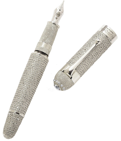 Bạn có nghĩ một chiếc bút máy lại có giá 1,47 triệu USD tương đương 30,4 tỷ đồng hay không? Mức giá khủng này thuộc về cây bút Aurora Diamante của thương hiệu Italy. Ngòi bút được làm bằng kim loại quý và vàng 18K, không chỉ có vậy trên thên bút được đính khoảng 2.000 viên kim cương nên giá trị liên thành của nó cực kỳ cao.